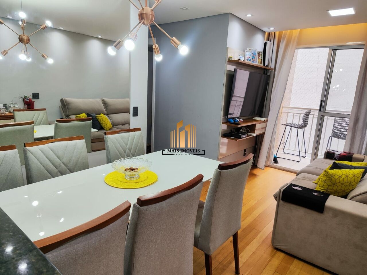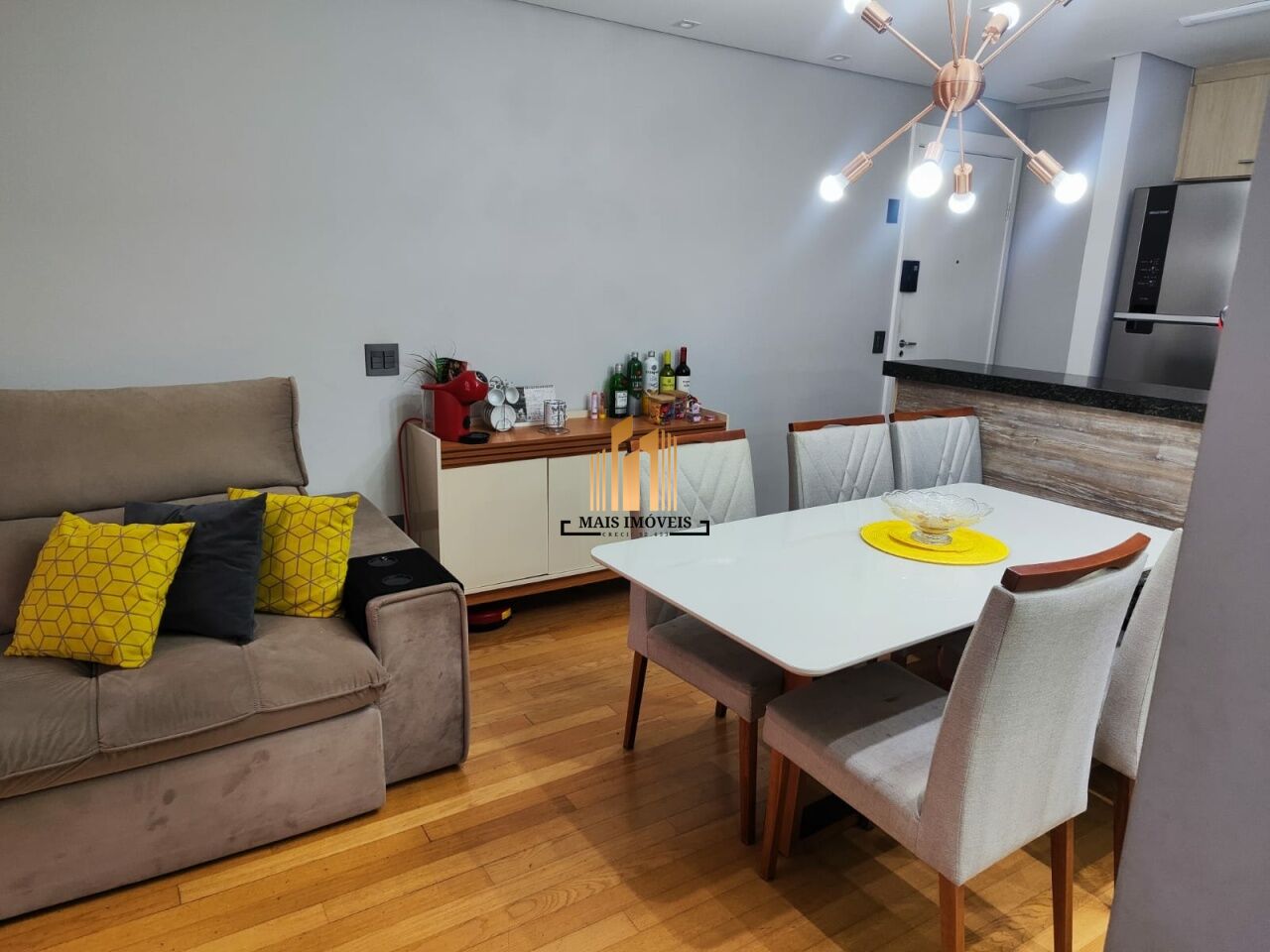 Com móveis planejados nos dormitórios, cozinha, banheiro, área de serviço e painel de parede na sala, caracteriza-se pelo aconchego e beleza.